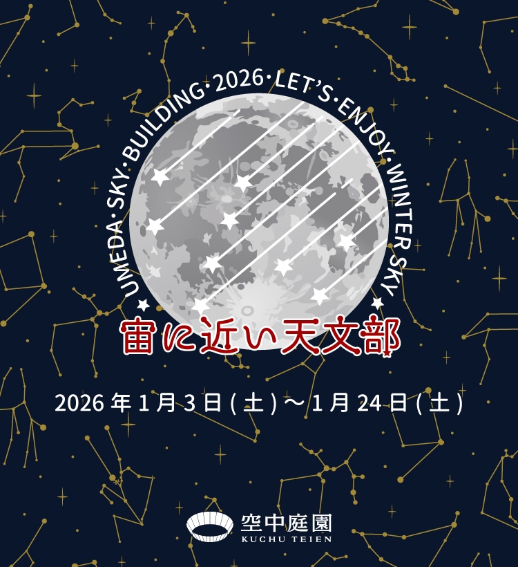 チケット 団体 NEWS 空中庭園展望台 営業時間 9:30〜22:30(最終入場22:00) ※特別営業はこちらからご確認ください ハートロック購入をご検討のお客様へ WEBチケット購入はこちら 開催中・開催予定のイベント情報 2025年12月4日(木)~2026年1月4日(日) 秘密結社holoX tower invasion ~holoX色に染め上げろ!~ 「秘密結社holoX」が空中庭園展望台に降臨! 2026年1月9日(金)~2月1日(日) 『文豪ストレイドッグス TOWER TRIP』 アニメ『文豪ストレイドッグス』×全国3都市タワーコラボ開催! 2026年1月1日(木) 空中庭園 初日の出営業 2026 新年の始まりは「地上173mの特等席」で。 2026年1月3日(土)~1月24日(土) 宙(そら)に近い天文部 2026年1月の天体イベントスケジュール 常時チャレンジ可能 お子さま向けクイズラリー「スカイクエスト」 新梅田シティを歩きまわろう! MORE 施設案内 空中庭園展望台 39-40F, 屋上 MORE ショップ・レストラン タワーイースト 39F MORE 昭和レトロ商店街滝見小路 B1~1F MORE WILLERバスターミナル大阪梅田 タワーイースト 1F MORE テアトル梅田 タワーイースト 3-4F MORE 展示会場・貸会議室 タワーウエスト 22,36F,他 MORE クリニック タワーイースト 7F MORE 絹谷幸二 天空美術館 タワーウエスト 27F MORE 魅力発見 梅田スカイビルには、まだまだお伝えしたい魅力がいっぱい! 知れば知るほど楽しめる「梅田スカイビル」の “魅力”を少しずつご紹介していきます。 MORE ランドスケープ 花野〜新・里山〜/希望の壁/中自然の森 梅田スカイビルのある新梅田シティには、四季折々の風景に出会えるランドスケープが。春の桜・秋の紅葉など、季節ごとに移り変わる自然とふれあって。 MORE ガイドツアー 普段は入ることのできない場所も巡りながら梅田スカイビルをより深くお楽しみいただけます。 建築とアートに特化した大人のガイドツアーをはじめ見学の目的に合わせてアテンダーが丁寧にご案内します。 MORE PAGE TOP