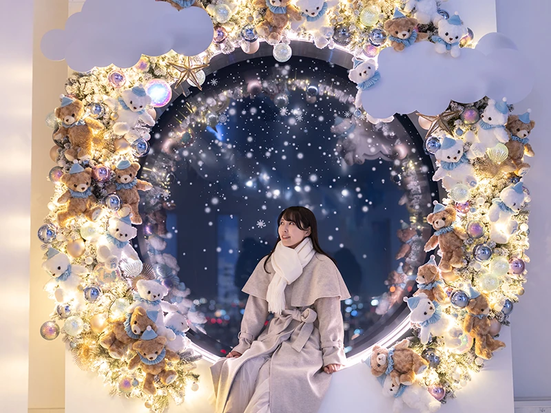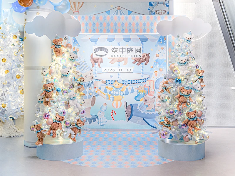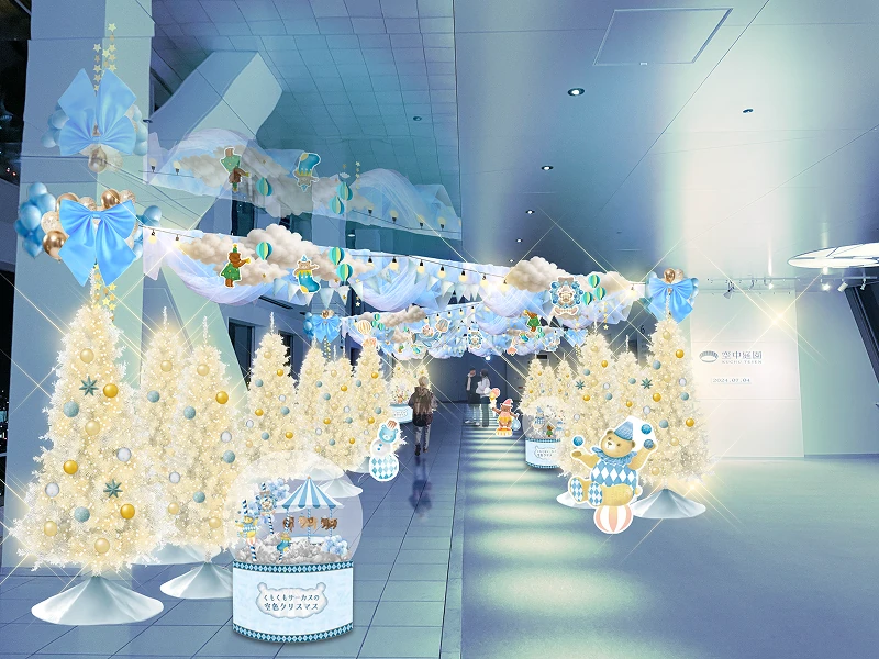 - 空中庭園展望台には、くもくもサーカスでみんなを笑顔にするクマのぬいぐるみがたくさん登場!