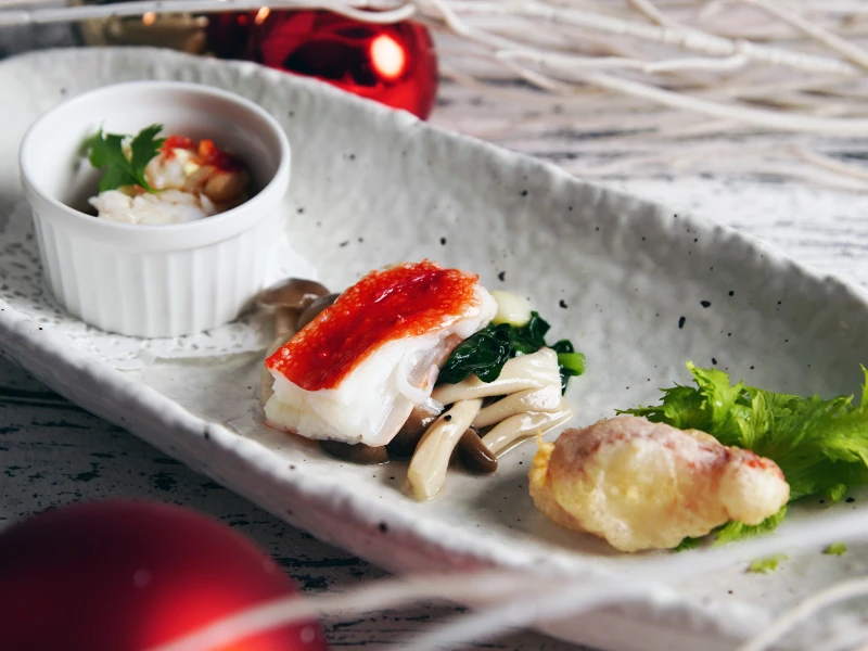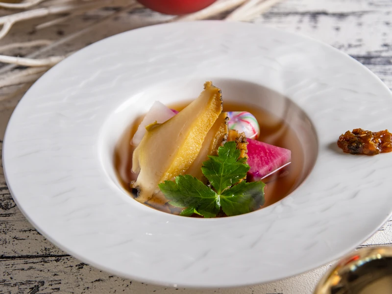 伝統的な技法を受け継ぎ守りつつも「低温真空調理」などの現代の調理法や、華やかな西洋風の盛り付けなど概念にとらわれることなく、日々新たな挑戦を続ける「燦宮」のクリスマスディナー。