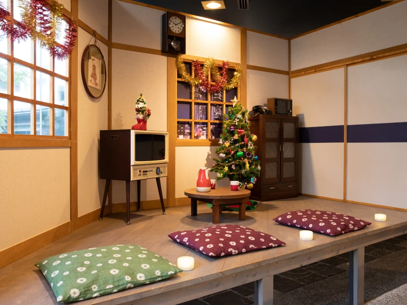 滝見小路では、昭和を思い起こさせる「どこか懐かしいクリスマス」の雰囲気をお楽しみいただけます。