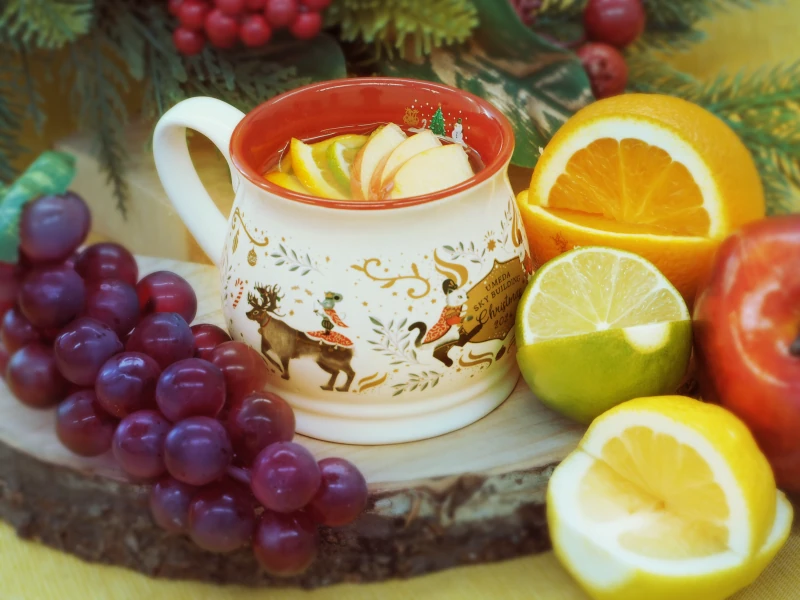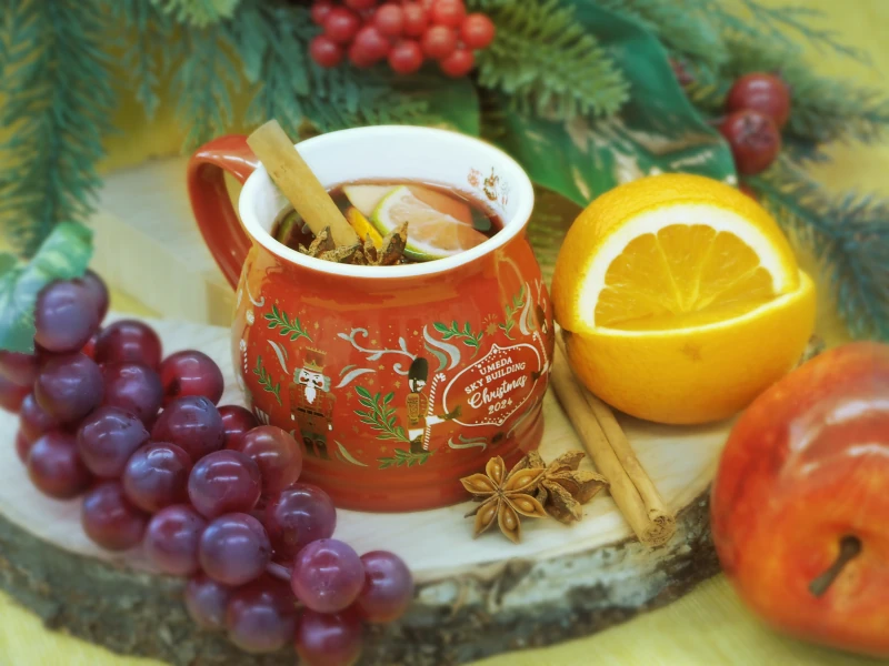 厳選した7種類のスパイスにフレッシュフルーツを合わせた赤ワインベースの自家製グリューワイン、すりおろしリンゴと柑橘系のフルーツを合わせたノンスパイスのホット白ワインの2種類をご用意しております。