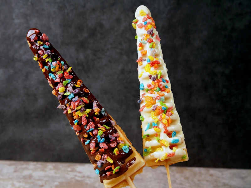 スイートチョコとホワイトチョコの2種類のロングワッフルとワイルドなスモークターキーのお店です。