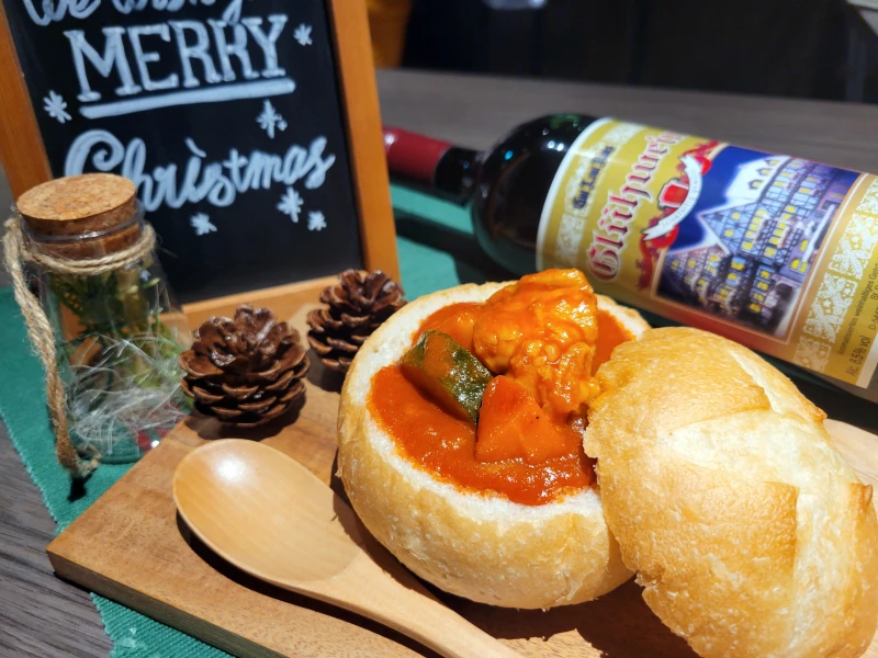 - 【数量限定】シチューパン ごろごろチキンのトマトソース煮込み・いちごとはちみつのホットチョコレート