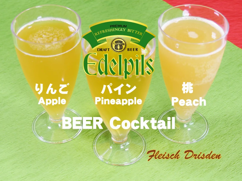 - 牛しゃぶシチュー・3種類のビアカクテル(りんご、パイン、桃)