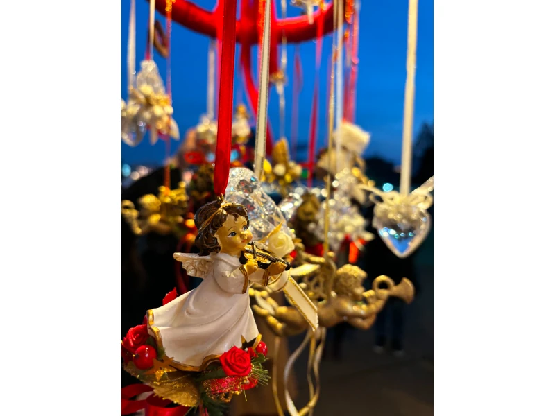 こだわりのグリューワインやキンダーワイン、あたたかいチキンやスープなどクリスマスに欠かせないフードが並ぶ広場で、
