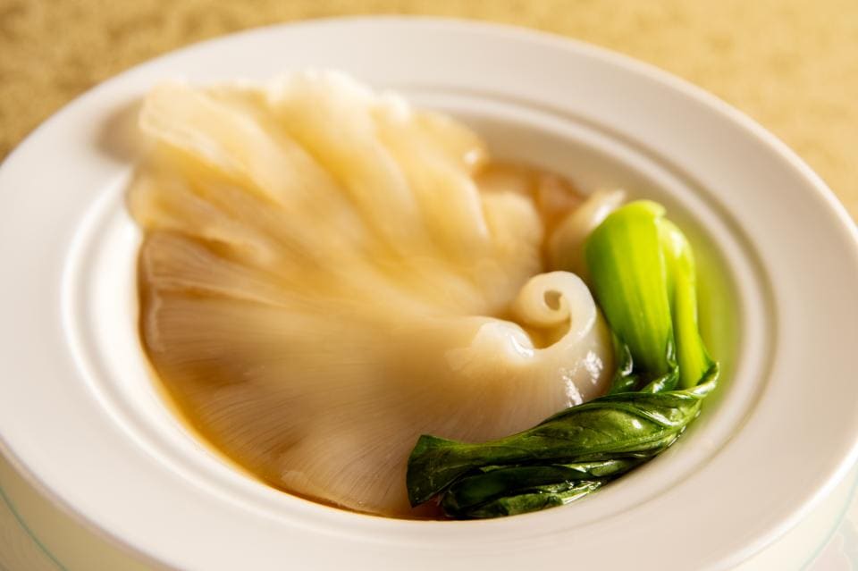ふかひれの味わいが引き立つ特製の餡は、鶏・豚ガラスープに、タケノコ、キクラゲ、白キクラゲ、帆立貝柱など山海の幸をたっぷり使い、オイスターソースで味付け。