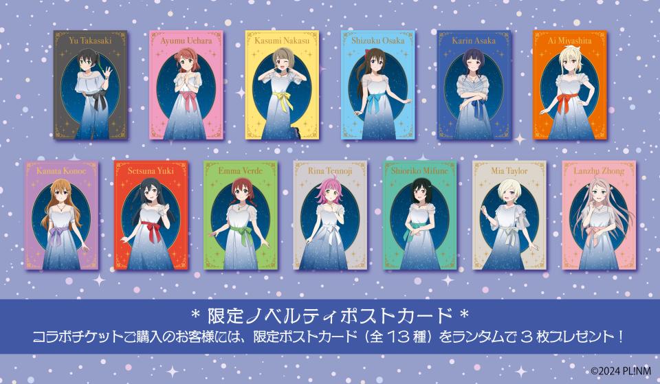 期間中コラボチケットご購入のお客様には、ノベルティとして上記13種のオリジナルポストカードからランダムで3枚をプレゼントいたします。