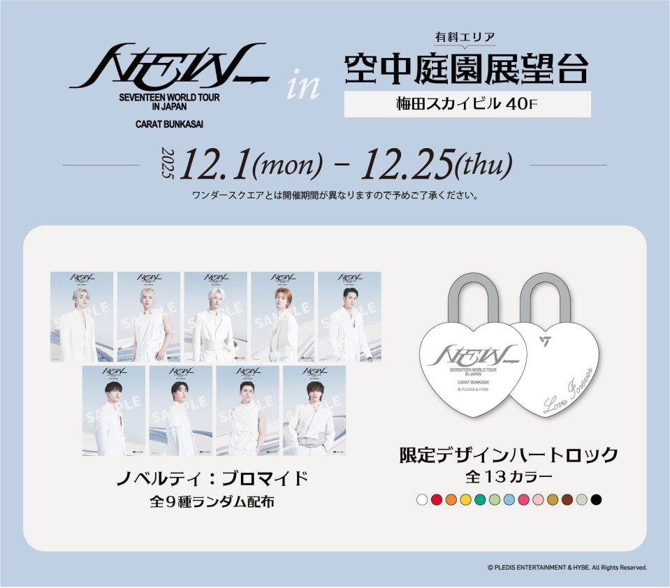 UMEDA SKY BUILDING Christmas 2025 の特別プログラムとして、『SEVENTEEN WORLD TOUR [NEW_] IN JAPAN CARAT BUNKASAI』大阪を開催いたします。