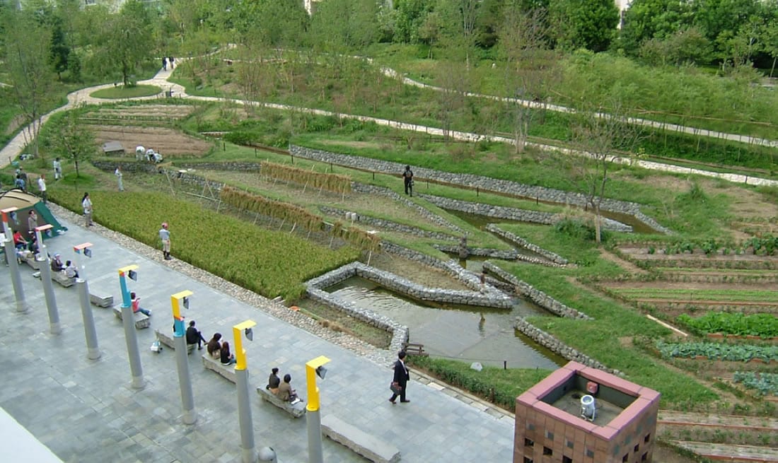 「大自然」と聞けば、全く人間の手が加えられていないアマゾンのようなところをイメージするかもしれません。それに対して人工的に作ったお庭のような小さな自然もあります。「中自然」はその中間を意味する造語で、大自然の野性味を残しながらも、都市との調和を目指して人が手を加えた自然をイメージしています。