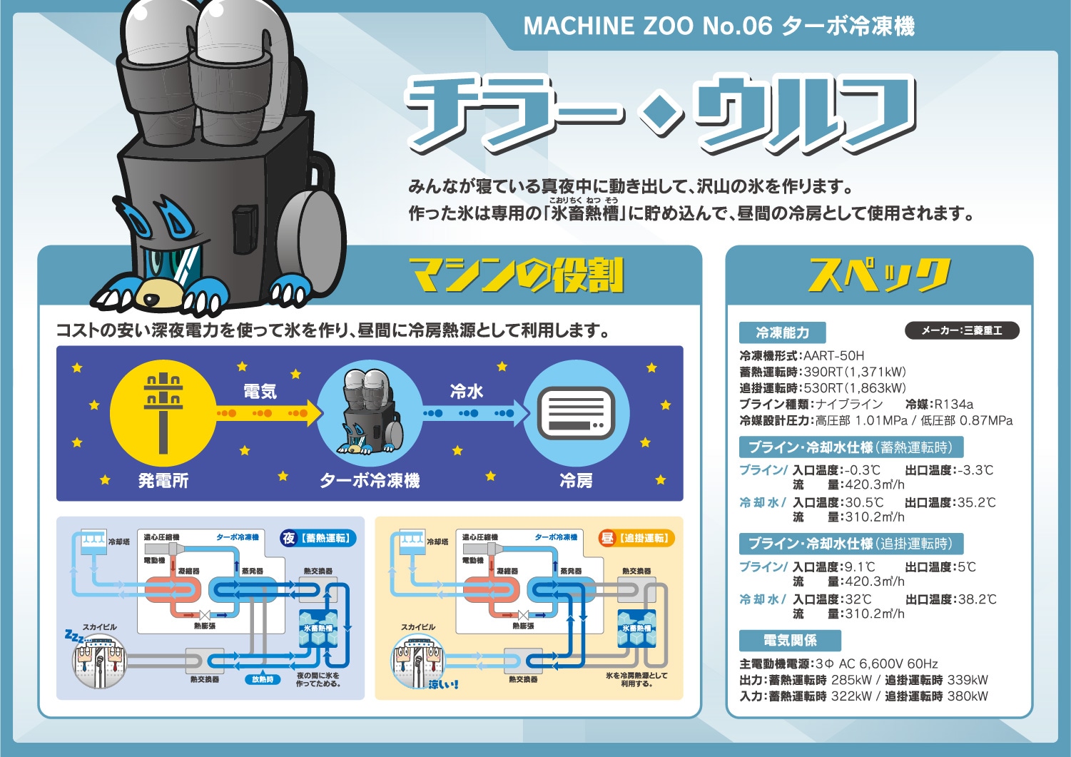 人に優しい街づくりの一環として、ビルの心臓部で重要な仕事をしている方々が自分たちの職場環境に誇りを持てるような職場づくりを目指し、形となりましたのが機械の動物園です。機械はオブジェとして彩色され、配管は機能別に色分けされています。これまでの機械室で働く人々の3Kのイメージを取り除く大胆な施策となりました。